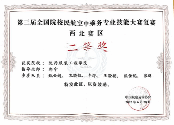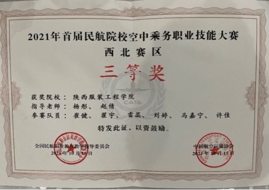 公司空中乘务专业在2021年首届民航院校空中乘务职业技能大赛中荣获团体三等奖。公司空中乘务专业在2023年第三届民航院校空中乘务职业技能大赛中荣获团体二等奖。