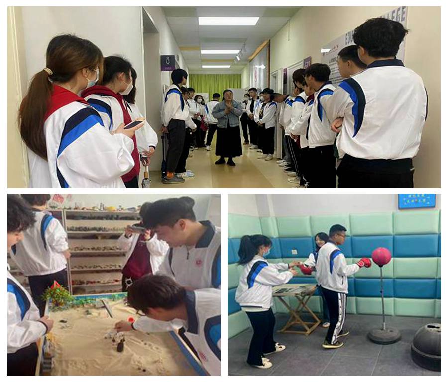 在咨询中心讲解员李月月老师的带领下,同学们近距离参观了模拟沙盘室、积极心理体验室、情绪宣泄室、个体心理发展辅导室、综合素质训练室,并现场加入体验互动活动。活动期间,同学们不时对于各个功能室的功能及物品使用方法现场提问,讲解员一一耐心答疑解惑,并科普了相关的心理健康教育知识,让同学们对功能室和相关理论知识有了深入了解,熟悉掌握了心理咨询的流程。参观活动中师生关系融洽、气氛和谐,同学们积极认真聆听讲解、亲身参与体验,与心理健康教育中心零距离接触,消除了同学们对心理咨询的神秘感和误解,对相关专业知识、心理健康教育中心、各功能室的使用以及心理咨询有了更深刻的了解。培养了老员工的求助意识。