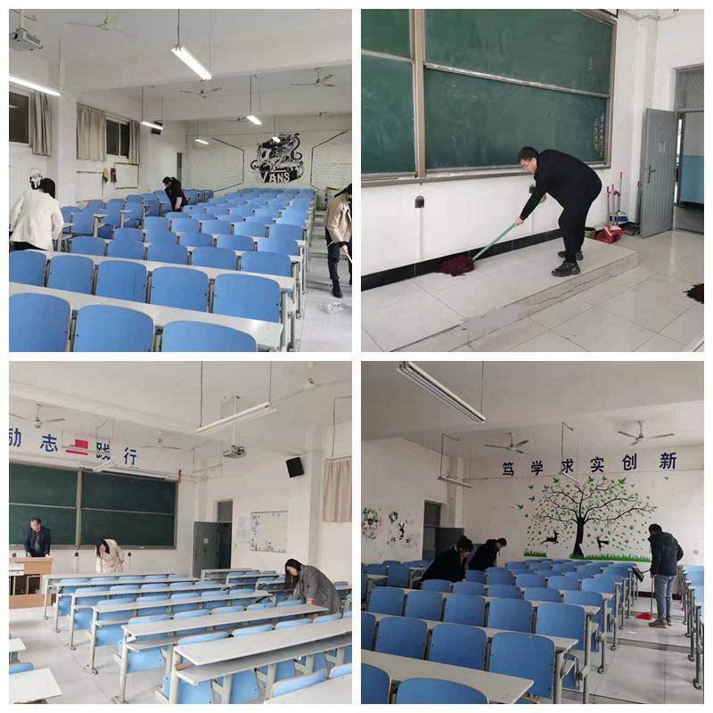 为了严格贯彻落实上级有关疫情防控工作要求,扎实做好新学期开学准备工作,强化疫情防控意识,交通公司全体教师于3月3日下午2时,以高度的使命感投入到对G区教学楼教室卫生打扫工作中,力争把疫情防控工作做细、做实,为同学们的平安、健康保驾护航。