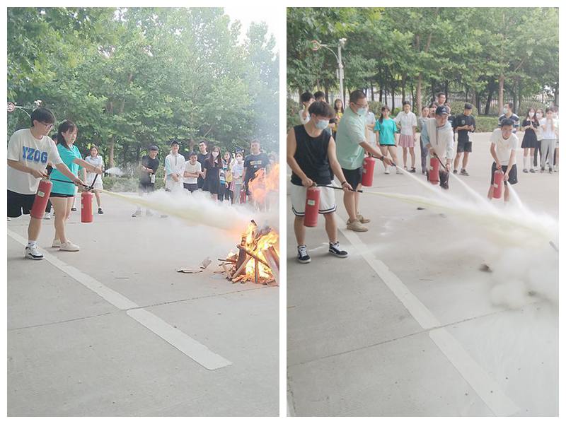 最后,所有参会人员来到校园东门空地,邓勇飞老师现场讲解了灭火器的正确使用方法,并让个别同学现场动手参与灭火,让大家对消防器材的正确使用有了更加直观地了解。