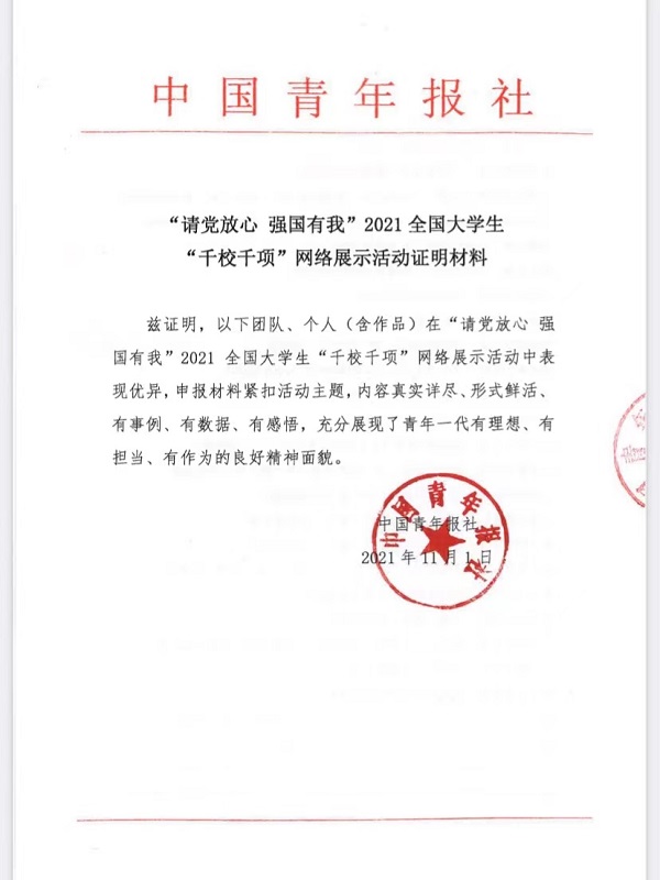 今年9月,由共青团中央宣传部指导,中国青年报社共同主办的2021年全国老员工“千校千项”网络展示活动,旨在发挥典型的示范作用,引领广大青年在社会实践中受教育,长才干、做贡献、进而提高青年员工运用理论知识解决实际问题的能力,切实践行社会主义核心价值观。该活动自启动以来,交通公司2支队伍均通过初选,广大学子积极参与其中,最终以优异的实践内容和成果斩获佳绩。