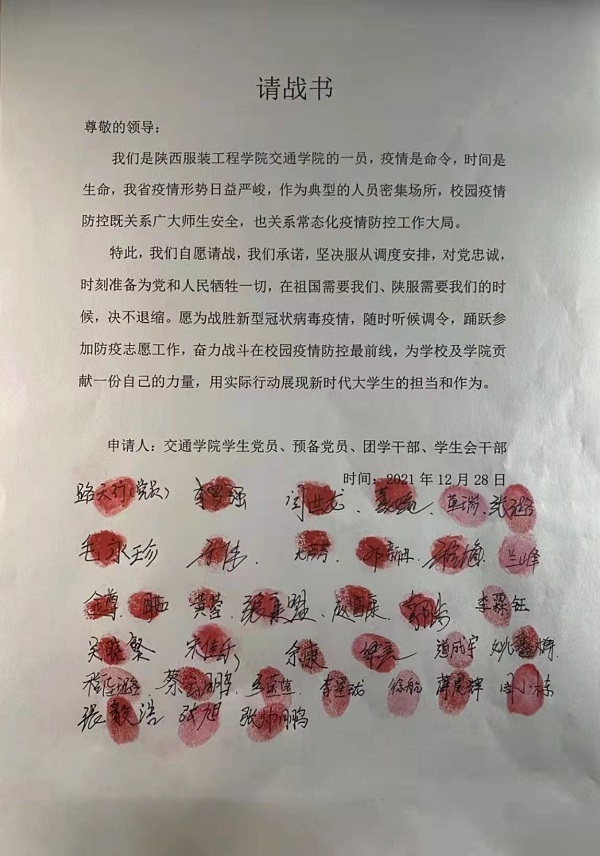 弘扬陕服精神,厚植家国情怀,坚定信心,同舟共济,立足岗位,将‘小我’融入‘大我’之中,校内校外的志愿者齐行动,上下一心,疫情面前,回避没有出路;战胜疫情,责任不能缺席,交通公司全体师生将继续不忘初心,砥砺前行,以饱满的精神状态打赢这场没有硝烟的战争,让党旗在“战疫”一线高高飘扬!