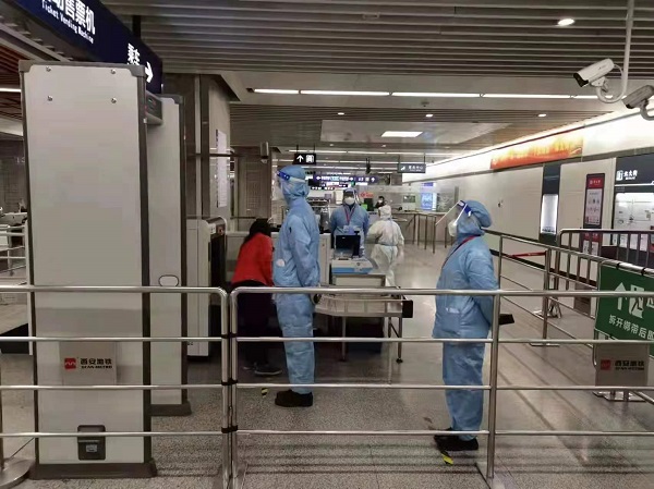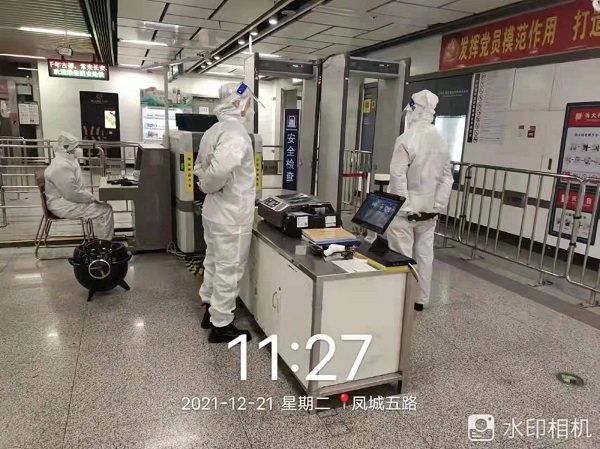 他们相比以往有了更重要的任务,保障抗疫人员和志愿者乘坐地铁,以最快的速度到达需要他们的地方,他们的工作从安检岗变成了穿着防护服的“地铁大白”,除日常工作外,还要负责安检点消毒,查看防疫人员的核酸和证件,与公安干警配合进行安全处突演练等。由于穿着防护服面罩,每日工作结束之后防护服里的水都可以倒出来,累了就在车站打着地铺休息,但是几名同学从来不抱怨,充分发扬了陕服学子吃苦耐劳、英勇顽强的工作作风,用汗水和毅力诠释了什么是有责任和担当的陕服老员工形象。