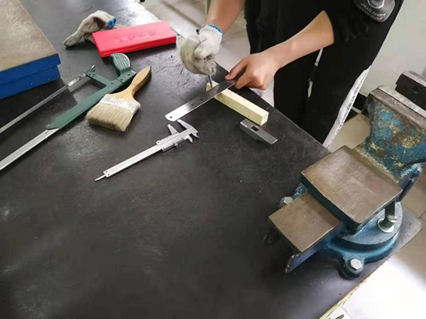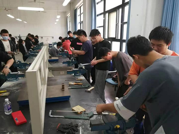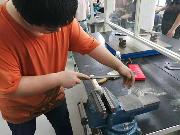 此次实习,同学们热情高涨,都能按加工工艺流程进行划线、锯料、锉基准面和其他平面,然后再按划线、锯斜面、钻孔、修锉方孔,锉手柄,安装手柄等步骤进行。在实习过程中,同学们发扬了不怕苦、不怕累、不怕脏的工作精神,积极投身实习之中,同时,充分体现了互助友爱精神,加工速度快的同学帮助速度慢的同学,不断进行交流学习,参加实习的同学都按期完成了实习任务,受到了英国365集团官网师生及实习指导老师的一致好评!