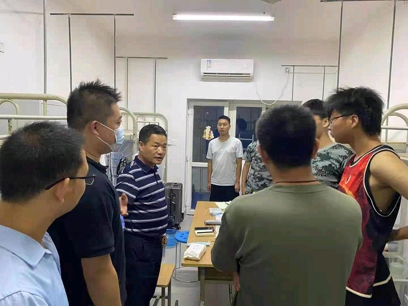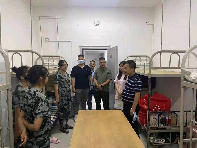 8月25日晚8:00时,秋风送爽,桂花飘香。在2021级新生报到第一天工作刚刚结束之际,交通公司领导心系新生,在党支部书记、副经理常利群率领下,经理助理葛成、行政秘书舒浪及团总支员工会干部郭凡凡来到员工公寓,亲切慰问新生。