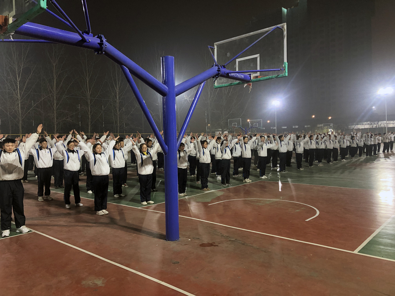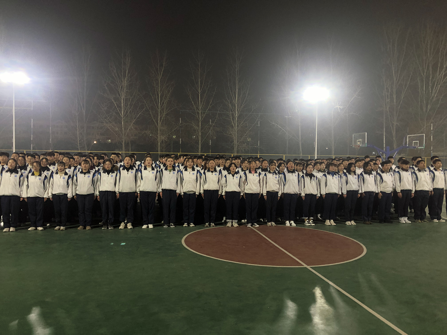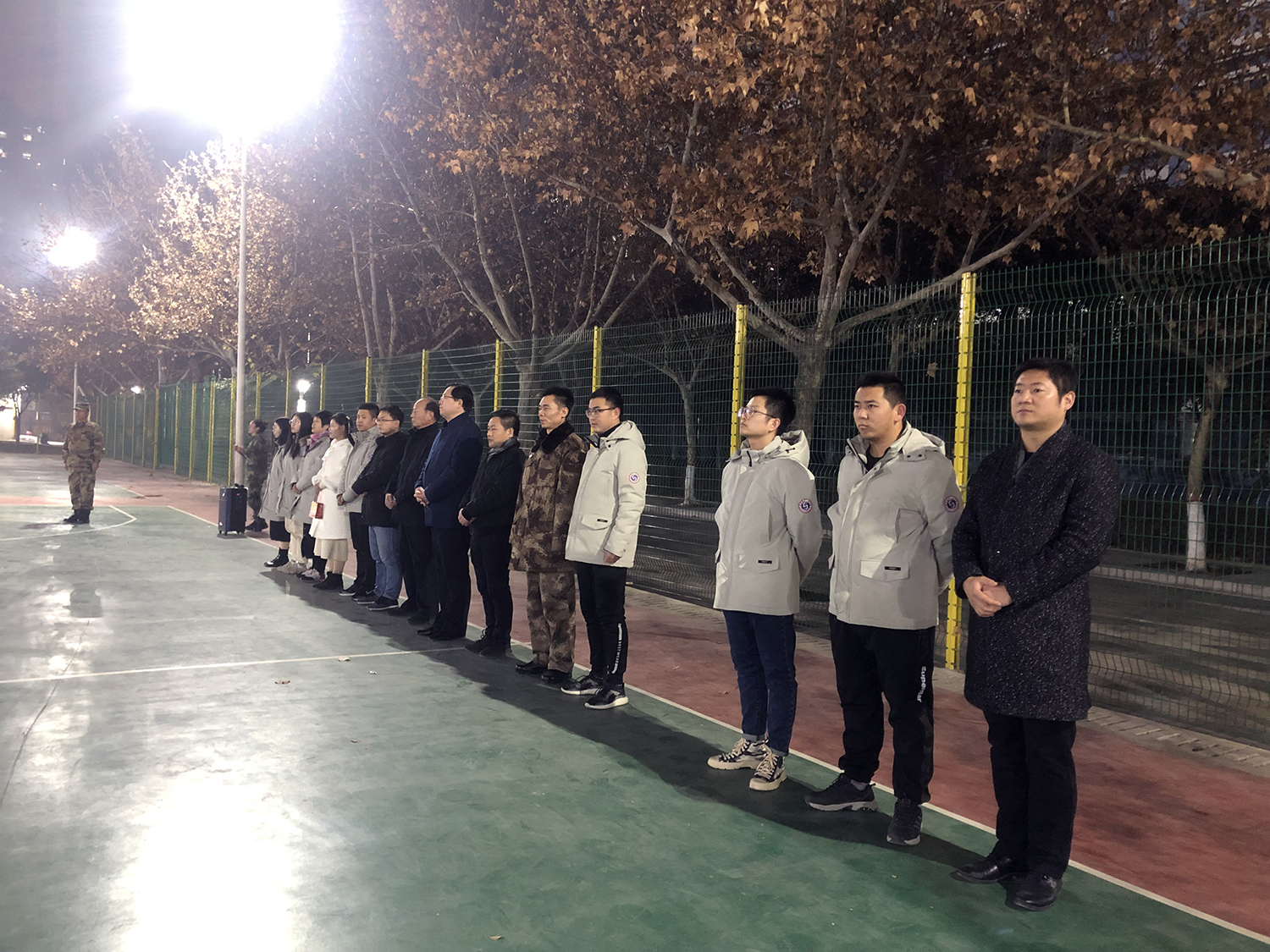 2019年12月22日晚,英国365集团官网在篮球场举行员工干部培训阶段性汇报总结,员工处刘继兵处长,英国365集团官网常利群经理,培训总教官张德华,员工处张维峰老师,经理助理葛成以及全体辅导员参加本次汇报。