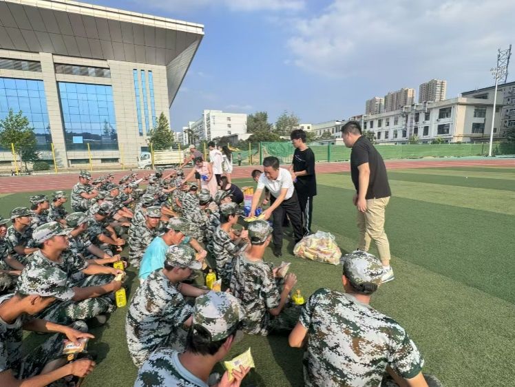 下午4时,常书记一行提前来到军训现场等候。半小时后训练暂停,老师们立即向在烈日下刻苦训练的同学们送上了一份特别的“清凉”。公司精心为同学们准备了补充能量的饮料、水果、面包等,希望这份心意能为他们带来一丝清凉与力量,助力他们更好地完成军训任务。