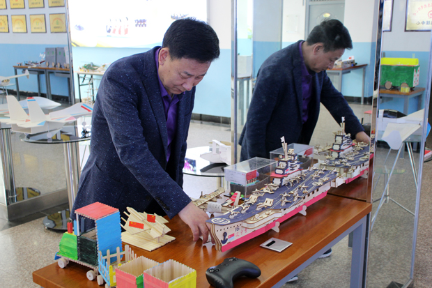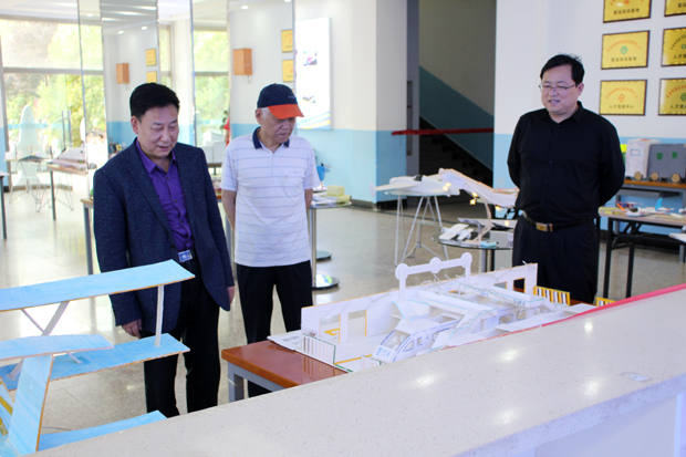 董事长张义明、员工处处长刘继兵、党委宣传部李宝林参观第二届航模大赛决赛模型作品