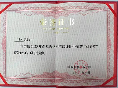 王丹老师在公司2023年课堂教学示范课评比中荣获优秀奖