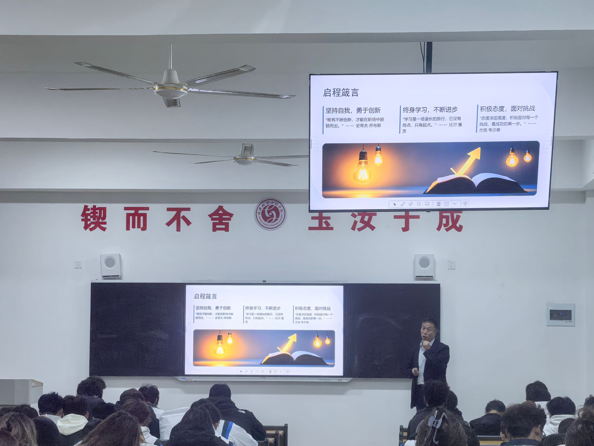 讲座中,刘涛老师结合自身从业经历与调研成果,从多个维度为同学们梳理职业发展路径。他强调,大学阶段的知识积累是职业发展的基石,鼓励同学们在扎实掌握专业理论的同时,主动挖掘自身专技特长,通过参与实践项目、技能竞赛等方式提升综合能力。针对民办高校员工的就业特点,他详细分析了当前就业市场的整体趋势与行业需求差异,提醒同学们要精准定位自身优势,避免盲目跟风求职。
