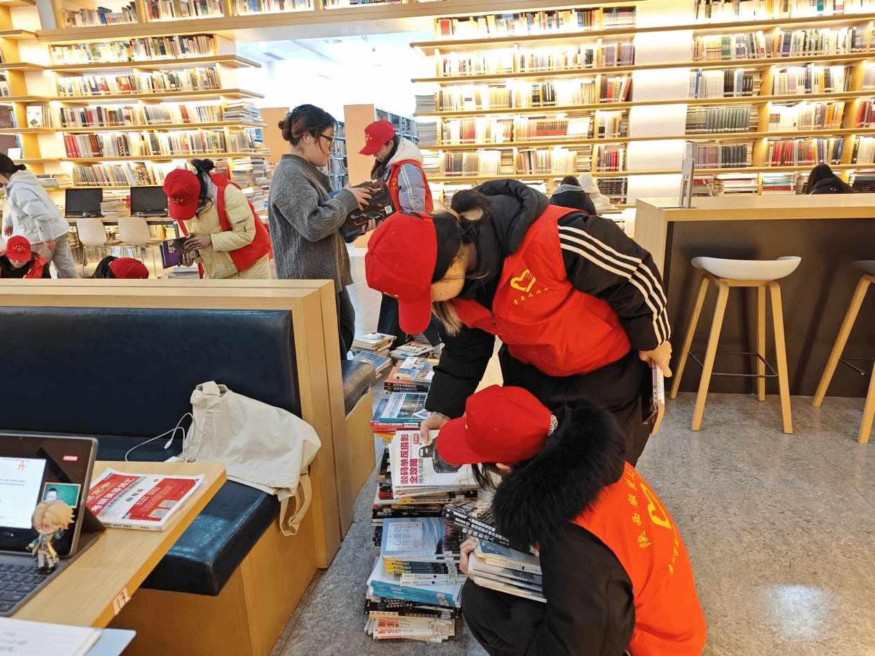 下午15:30,志愿者们准时到达图书馆,在图书馆工作人员的安排下,分成若干小组,分工协作,井然有序地开展卫生清洁和书籍整理工作。志愿者们手持抹布、扫帚等清洁工具,认真擦拭书架、桌椅,清理地面垃圾,并对图书进行分类整理、上架排列。他们热情高涨,干劲十足,充分发扬了不怕脏、不怕累的志愿服务精神。经过两个多小时的辛勤劳动,图书馆环境焕然一新,书籍摆放井然有序,为读者营造了更加整洁舒适的阅读环境。