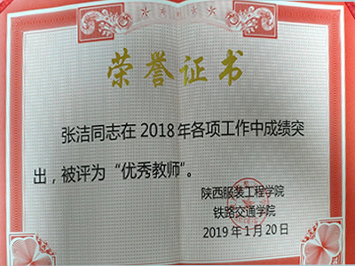 张洁教师2018年评为院级优秀教师