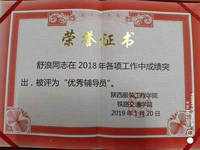 舒浪同志于2018年荣获院级优秀辅导员