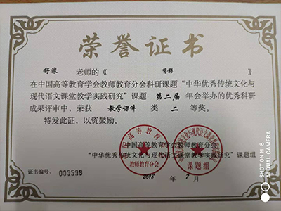 舒浪同志于中国高等教育学会科研课题中荣获二等奖
