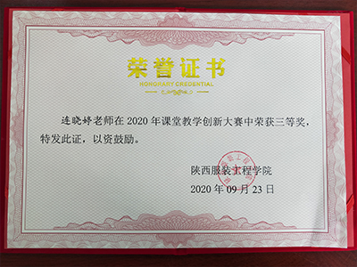 连晓婷教师于2020年课堂教学创新大赛荣获三等奖