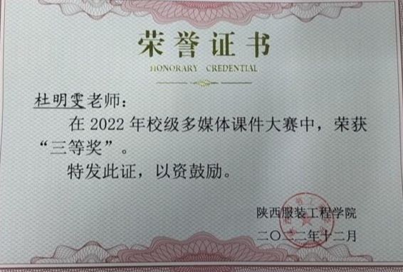 杜明雯老师在2022年校级多媒体课件大赛中荣获三等奖